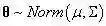 其中包括均值向量和协方差矩阵。本例子中,我们假设协方差矩阵是: