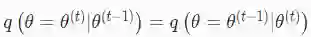 在Metropolis过程中,给第一个状态θ(1)初始化一些值。我们然后使用建议分布