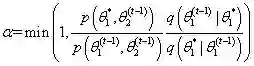 ,该节点是在上一个状态的基础上生成的。下一步就是接受或者拒绝该建议。接受建议的概率是公式2.6:
