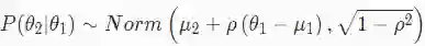 示例1:在上一章的“示例3”中,我们利用Metropolis sampler从二元正态分布中采样。二元正态分布也可以用Gibbs sampling进行高效的采样。在二元正态分布中设: