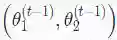 例如,假定我们有一个二元分布θ=(θ1,θ2)。首先用合适的值初始化采样器的