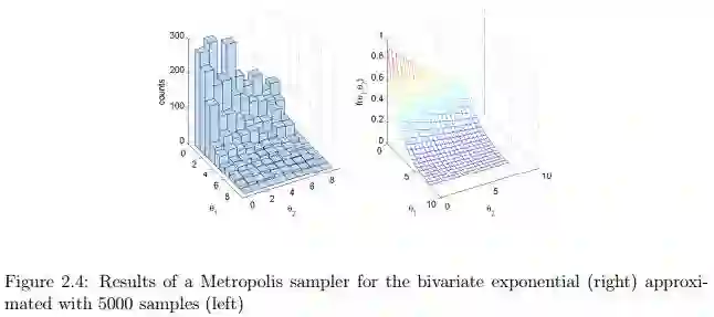 ,利用componentwise Metropolis sampler采样方法。建议分布的每个子变量是以原始值为中心的,标准偏差为σ。该采样器的MATLAB实现代码如Listing 2.7所示,代码的输出结果如图2.5所示。