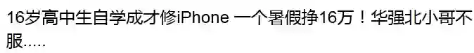 美国一名的高中生光靠着修iPhone,去年暑假就挣了16万,并且他是在YouTube上找了一些视频自学的。