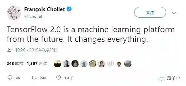 Google深度学习科学家、Keras作者François Chollet热情的表示:“TensorFlow 2.0是一个来自未来的机器学习平台,它改变了一切”。