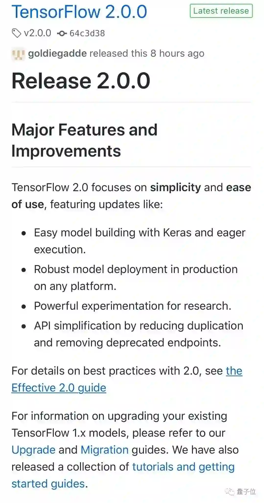 今天凌晨,这个全球用户最多的深度学习框架,正式放出了2.0版本。