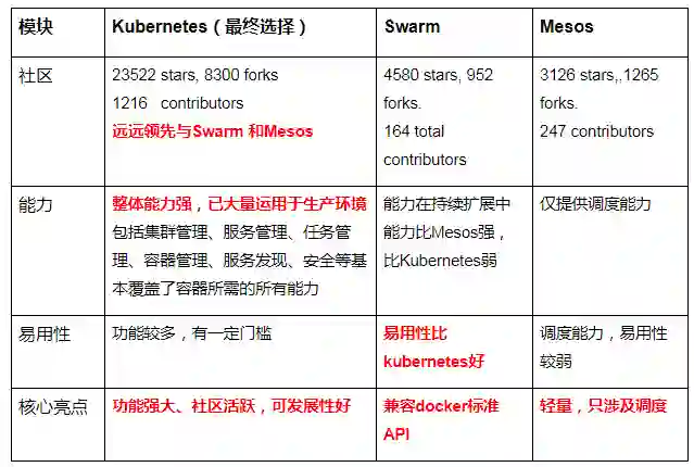在最开始的容器产品技术选型阶段,腾讯云也曾对比过 Kubernetes、Docker Swarm、 Mesos:
