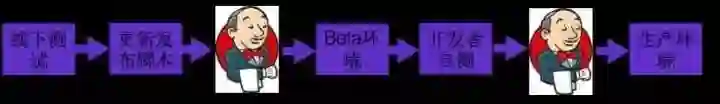 如上图,开发者拿到服务器准备线上发布时用 Jenkins 触发脚本的方式:用 Jenkins 的脚本做测试,执行代码推送。当需要新加一台服务器或者下线一台服务器,要去修改这个发布脚本。 发布流程大概为:Jenkins 脚本先往 beta 环境发,开发者在 beta 环境里做自测,自测环境没有问题就全量发。