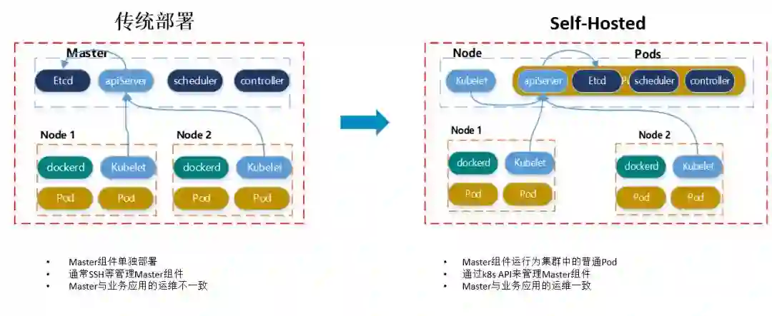用 agent管理节点,随集群增加安装包、证书、配置越发难以维护,更新回滚困难