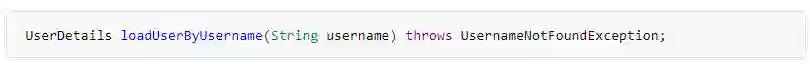 在接口UserDetailService中只有一个方法,接收一个字符串返回一个UserDetails对象,当认证成功后,UserDetails会被用来构造一个Authentication对象保存在SecurityContextHolder中。