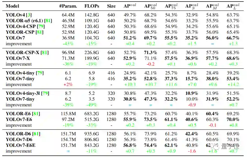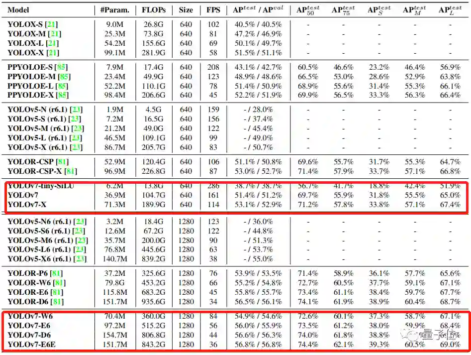 在论文中,团队详细对比了YOLOv7和其他变体的性能对比,并介绍v7版本的新变化。