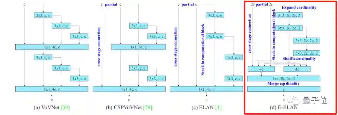 在架构方面,E-ELAN只改变了计算块中的体系结构,没有改变过渡层的体系结构。