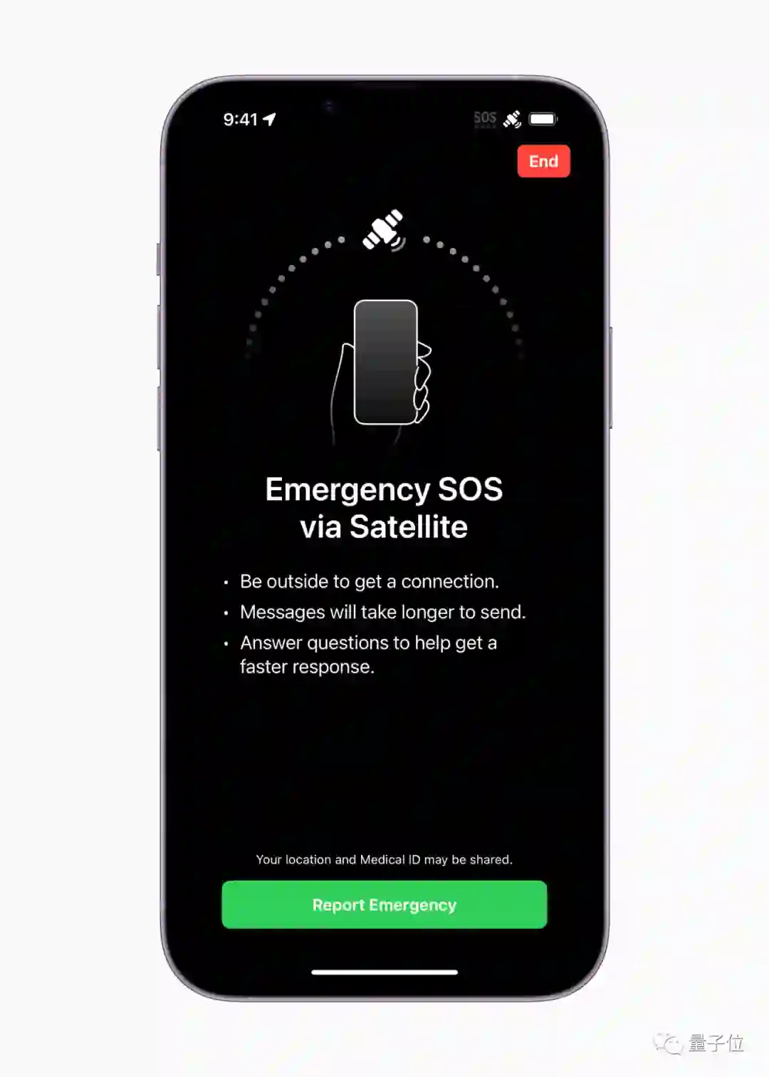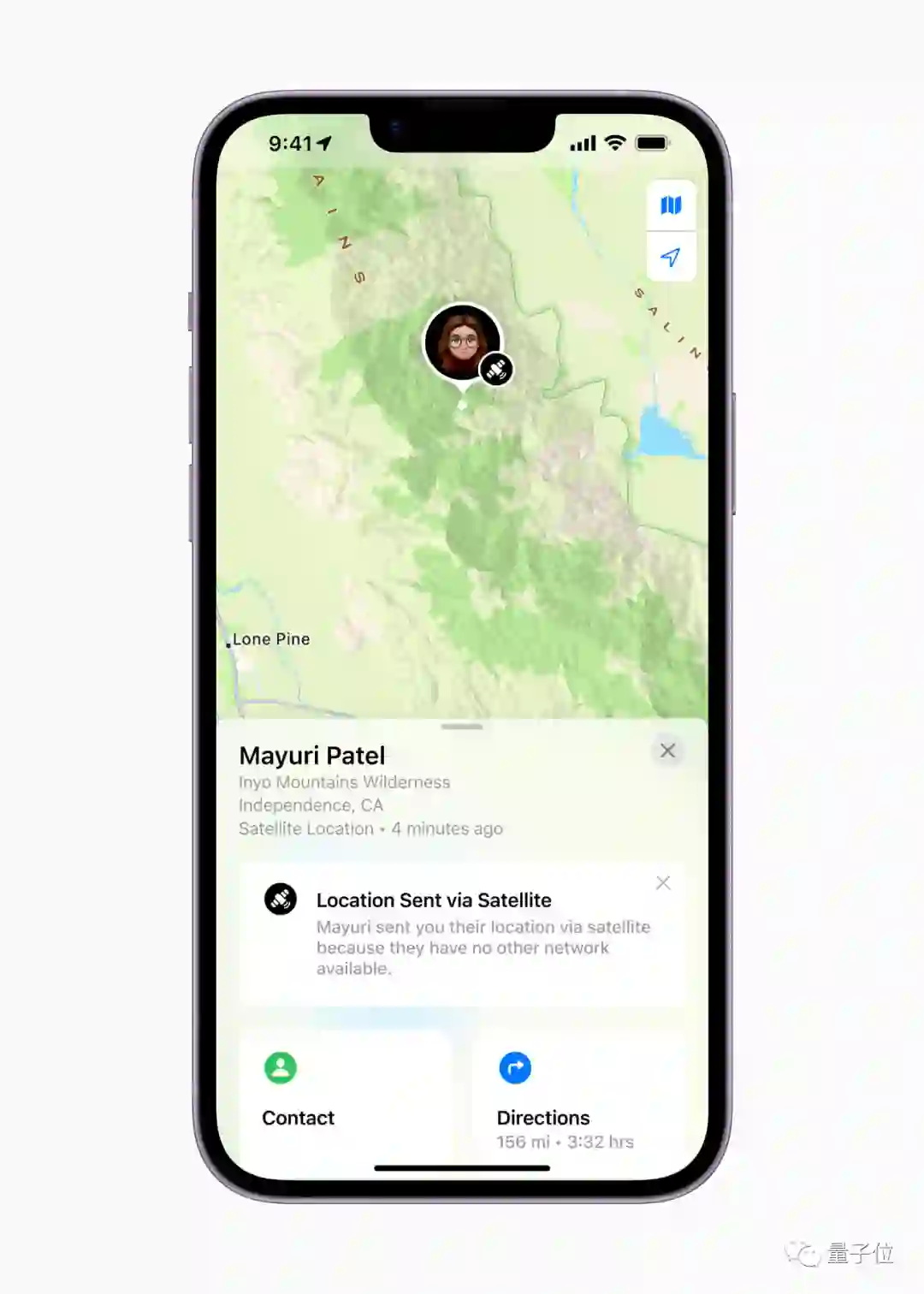 除了紧急联系,也可以用于在没有蜂窝网络信号的时候共享位置,大约15分钟更新一次。