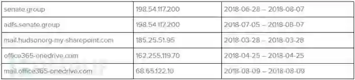 我们注意到,有几个域名和子域在某网络架构中仅只出现了一天或更短的时间,这有点奇怪,可能是APT28组织发起攻击后,为了避免其钓鱼页面被追踪溯源而迅速禁用和转移的迹象。然而,也有一些域名在同一网络架构中长期出现,像 Namecheap 上的 ‘adfs-senate.services’ 和 Domain Registry 的 ‘adfs-senate.email’就将近活跃了一年,而且Namecheap还汇集了攻击者的部署页面,并把它们设置成吸引流量的自动跳转页面。