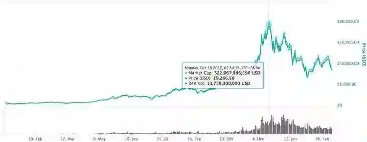 在 2017 年圣诞节前后,欧美的区块链热潮达到顶峰,一同达到顶峰的还有比特币的价格:在 12 月中旬首次突破 2 万美元。据说很多美国人是拿着年终奖来不及圣诞节扫货,直接去买比特币。不过,有高潮就有低谷,随着比特币价格从 2 万美元高点跌落,人们在 Google 上搜索区块链的热度也不断降低,截至目前 Google Trends 上区块链关键字的热度已经和去年 11 月份持平。