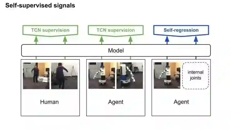 通过视频的分解镜头来学习,将时间作为监督信号,发现视频的不同属性。这组嵌入向量经由一组非结构化和未标记的视频训练,里面含有和任务相关的有效动作,也有一些随机行为,来体现真实世界中的各种可能状态。