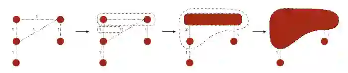 创建一个新的加权的图。之前步骤的社群变成图的节点。