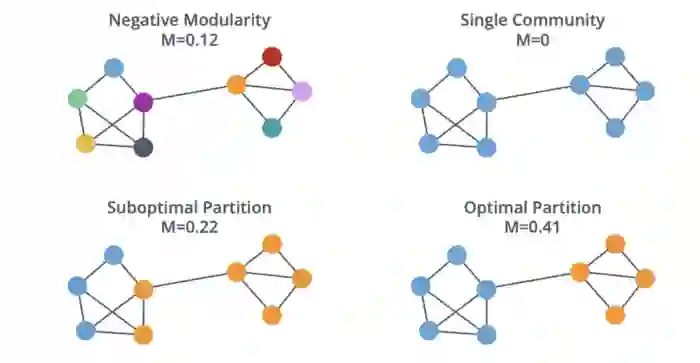 社群检测是根据给定的质量指标将节点划分为多个分组。