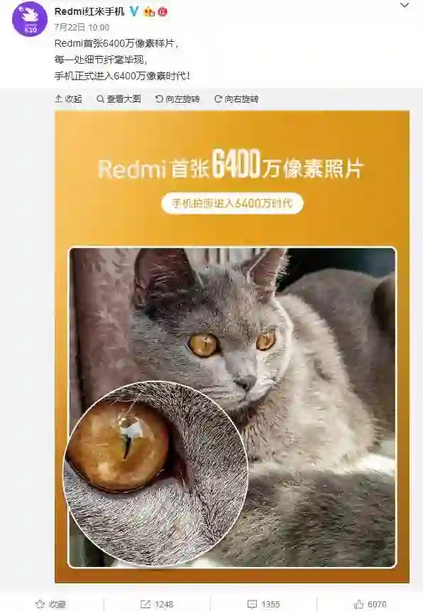 最近 Redmi 也开始为 6400 万像素造势,同样发布了一张 Redmi 手机拍摄的 6400 万像素样张,在放大的情况下基本没有噪点,足以体现 6400 万像素传感器的解析力。