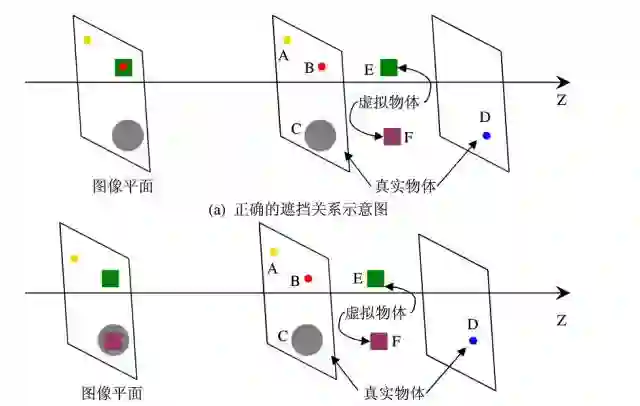 基于三维建模的办法:充分采集环境的信息,包括深度、大小形状等,然后对真实物体进行三维建模,求得这个物体在真实世界中坐标系下的三维坐标,然后判断和虚拟物体的位置关系来得到遮挡关系。