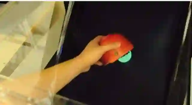 比如这里有一个虚拟小球,我们手持小碗遮住了它的一部分,所以它只露出了一半。