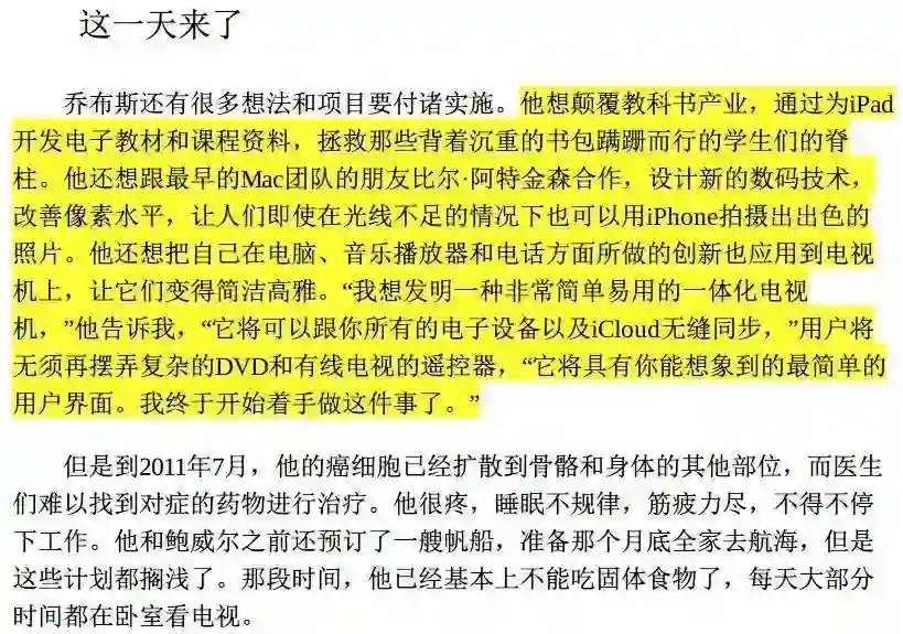 2011 年乔布斯因癌细胞扩散,疼痛导致他不得不停下手头的工作,每次看到这段文字,我的眼框都会噙满泪水。