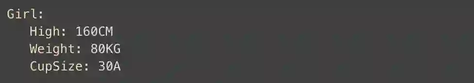 首先一个女孩,有身高、体重、罩杯等等属性,我们可以这样来写!