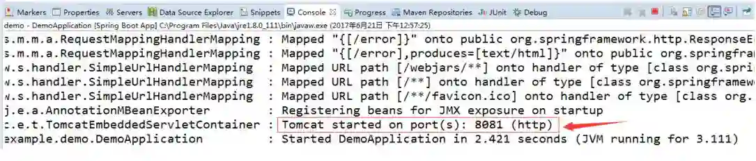 效果如下,首先从日志上看,端口已经变为8081