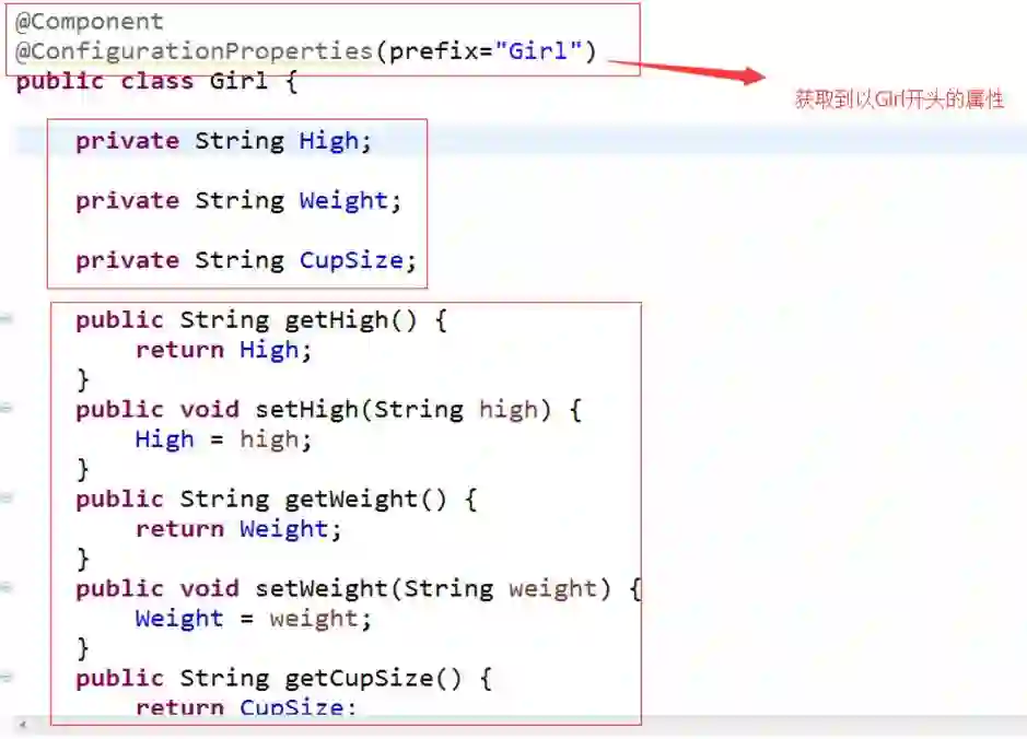 @ConfigurationProperties(prefix="Girl") //找到以Girl开头的属性