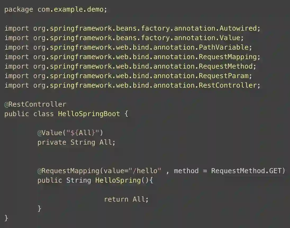 看了上面的例子后,会产生一个疑问,如果想一次调用10个、20个、50个属性值,难道我要在程序中注入50次值,使用50次注解吗? 为了解决这个疑问,Spring Boot 是这么解决的!