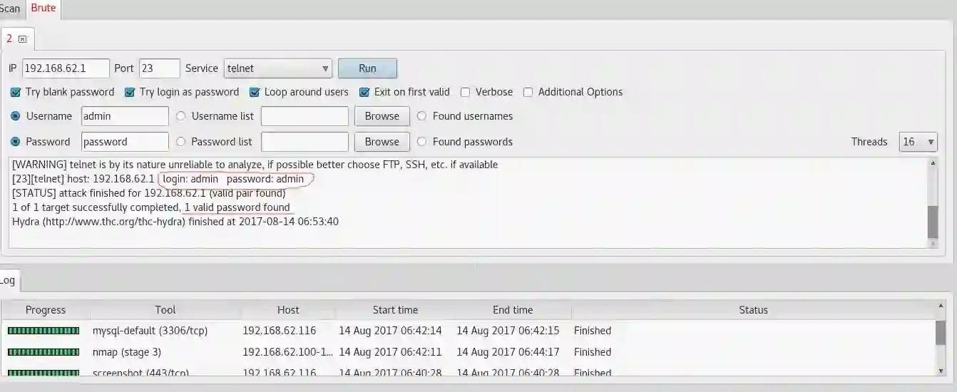 然后我们设置帐号密码,线程,然后开始用hydra爆破