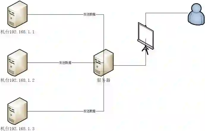 N个机台将业务数据发送至服务器,服务器程序将数据入库至MySQL数据库。服务器中的javaweb程序将数据展示到网页上供用户查看。