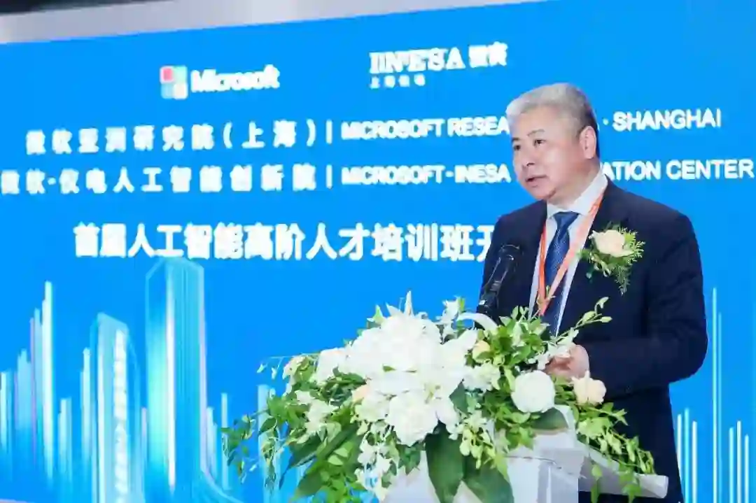 此外,由微软亚洲研究院(上海)与微软-仪电人工智能创新院联合打造的人工智能人才培训体系正式启动。第一期培训班将历时三个月,授课老师包括来自微软和上海仪电的多位专家,内容涵盖人工智能导论、数学基础、深度学习、应用实例等课程,以及关于强化学习、自然语言处理、计算机视觉等热门方向的专题研讨会,希望帮助学员掌握人工智能的理论与实践,培养具备前瞻视野和实践能力的创新型人才。在揭牌仪式结束后,微软全球资深副总裁、微软亚太研发集团主席兼微软亚洲研究院院长洪小文亲自为学员讲授“开学第一课”。