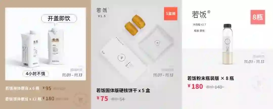 若饭选用燕麦、大豆、亚麻籽油等健康食材。除了碳水化合物、蛋白质、膳食纤维等宏量营养素,若饭还可以补充维生素、铁、锌、钙等微量营养素,一分钟就能九分饱。