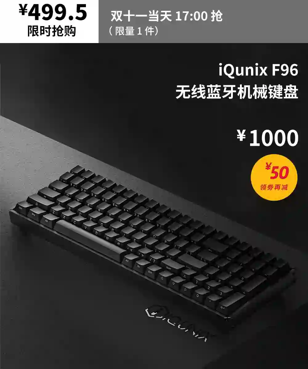蓝牙/有线双模连接,原厂 Cherry 键轴,同时还有 iQunix 擅长的全铝合金设计。