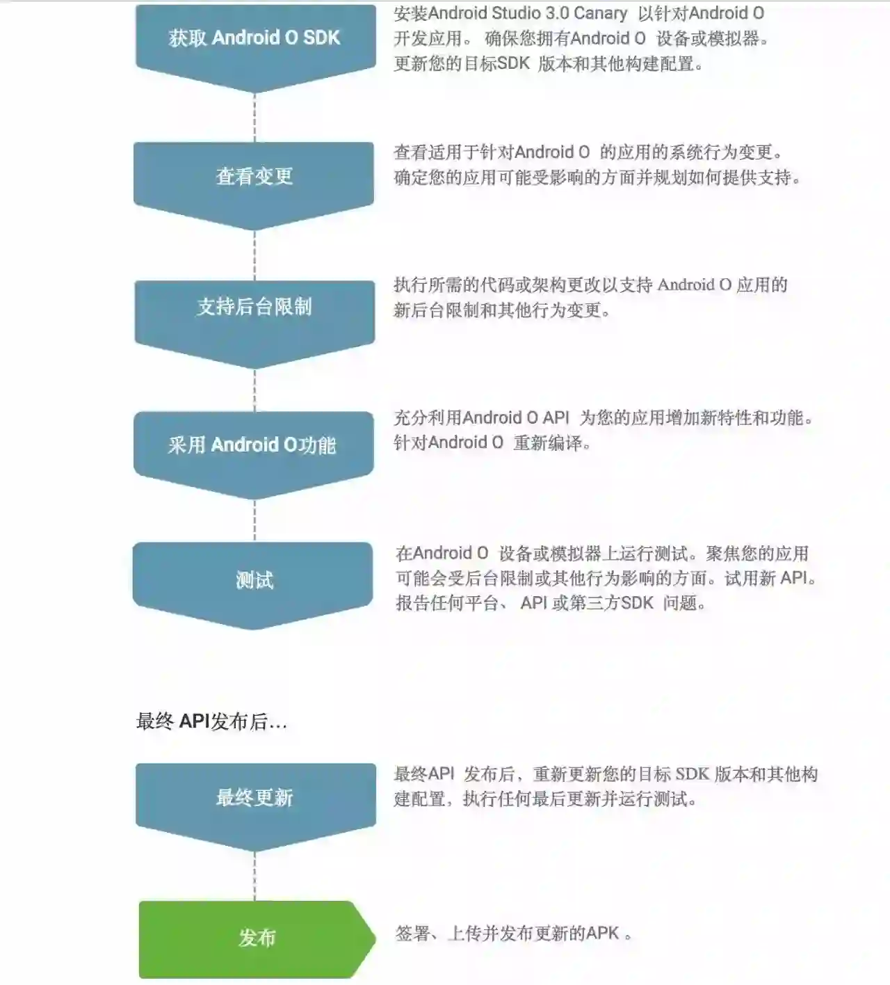 注:上述旨在确保平台兼容性的步骤是面向 Android O 构建应用的先决条件,因此请您务必先完成这些步骤。