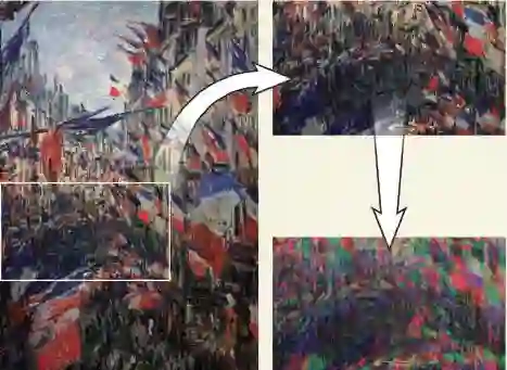 图1 莫奈名画《1878 年6 月30 日圣丹尼斯大街》经过色彩分离和移动后更加“印象派”(引自www.nature.com)