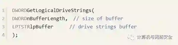 获取字符串类型的驱动器列表: