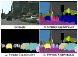 原图、语义分割、实例分割和全景分割