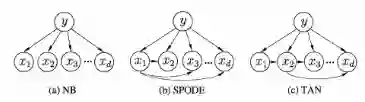 TAN方法。每个属性依赖的另外的属性由最大带权生成树来确定。