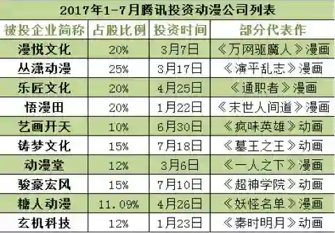 仅腾讯一家,在2017年前7个月就投了10家动漫公司。不仅腾讯、阿里、光线、华谊等巨头纷纷入局,各机构也加快了抢滩速度。出品过《狐妖小红娘》《镇魂街》《十万个冷笑话》等头部国漫的绘梦、艾尔平方等已先后被资本抢驻。