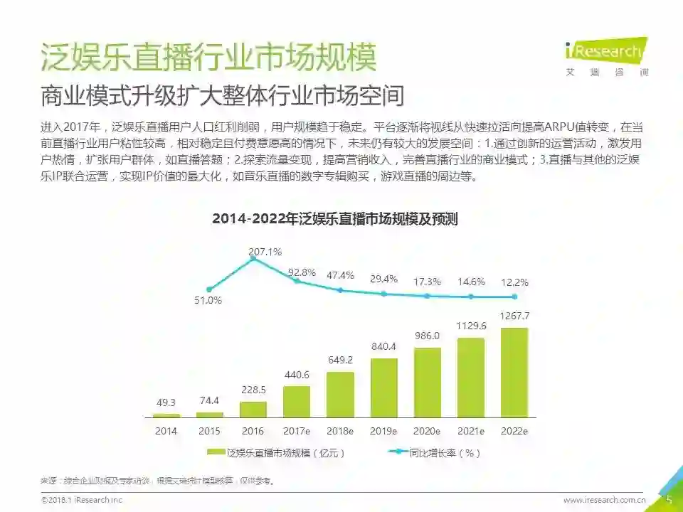 报告背景:泛娱乐直播用户规模相对固定,但用户粘性持续增长;从市场规模看,仍有较大发展空间。