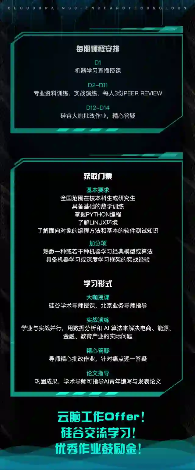 云脑机器学习实战训练营,硅谷大咖线上免费授课,中美导师深度辅导,三项挑战等你逐一击破。