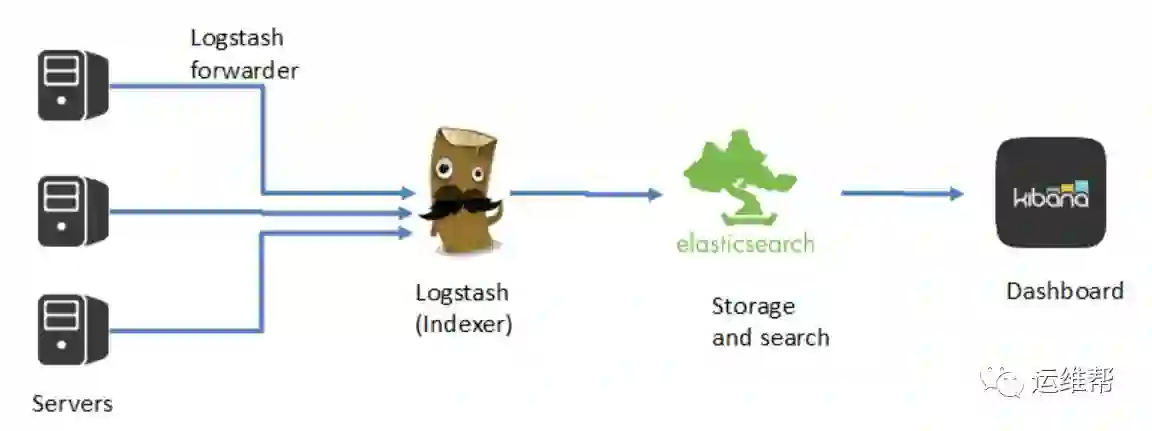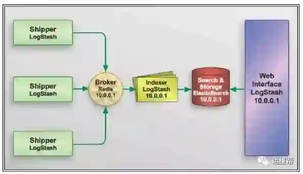 在实际运用中,logstash 进程会被分为两个不同的角色。运行在应用服务器上的,尽量减轻运行压力,只做读取和转发,这个角色叫做 shipper;运行在独立服务器上,完成数据解析处理,负责写入 Elasticsearch 的角色,叫 indexer。