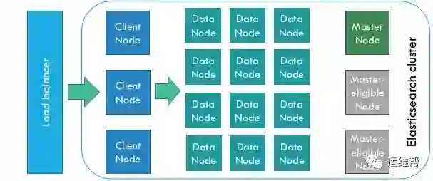 ElasticSearch是为分布式设计的,有很好的扩展性,在一个典型的分布式配置中,每一个节点(node)可以配制成不同的角色,如上图所示: