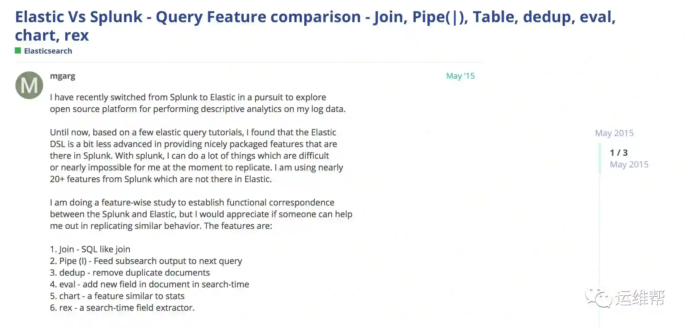 从这篇反馈可以看出,ES的search还有许多的不足。