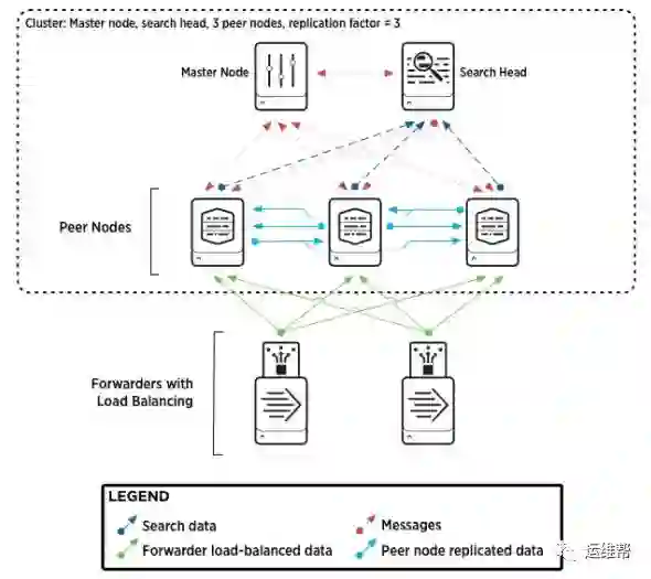 如上图所示,Splunk的indexer集群主要由三种角色: