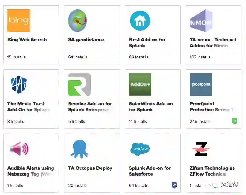 对于特定领域的数据获取,Splunk是用Add-on的形式。Splunk 的App市场上有超过600个不同种类的Add-on。