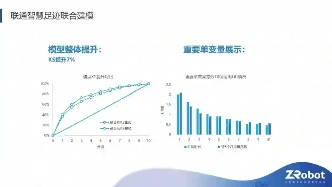 后来通过跟联通旗下大数据公司智慧足迹的合作,加入了比如用户的流量使用情况、缴费信息、欠费记录等等,使得我们整个模型效果得到显著提升。