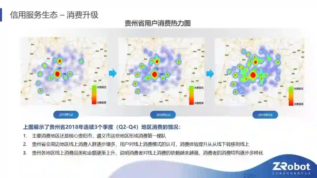 最后我简单提一下去年我们联合联通大数据公司智慧足迹在去年智博会上推出了城市消费热力指数,会上我们分析了四川重庆的消费趋势变化,今年我们既然相聚在贵州,我们就看下贵州的情况。