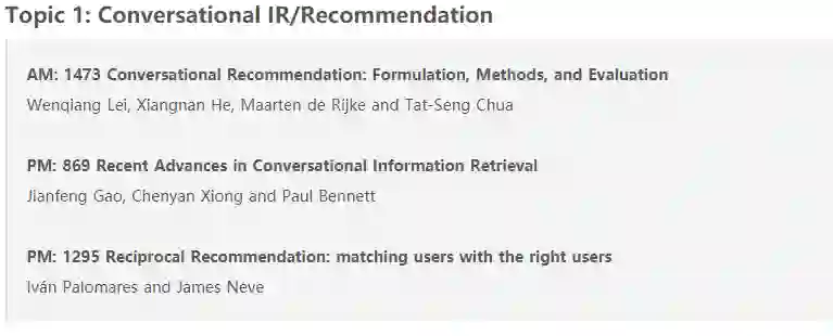 另外,还注意到今年SIGIR开办了一场关于对话推荐/检索的Tutorial,感兴趣的小伙伴可以多多关注。想提前了解对话推荐(Conversational RS,CRS)的朋友,可以公众号后台回复【CRS】获取对话推荐系统最新综述。